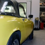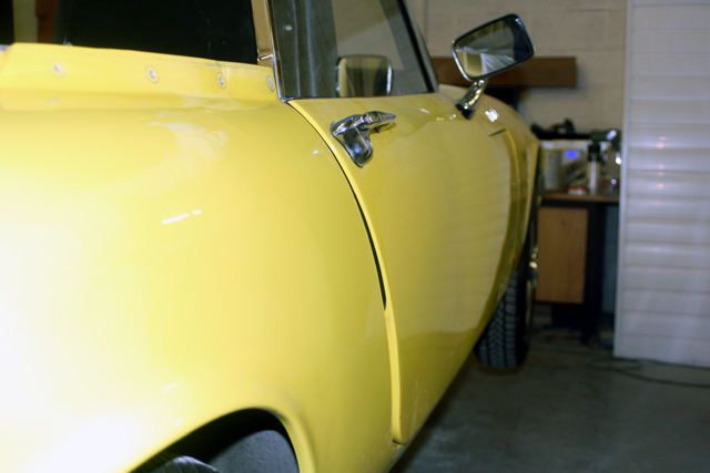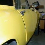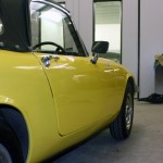 Here at Mick Hadley Autos, Brierley Hill we have had a Lotus Elan SE in the shop to remedy a common fault found in these cars consisting of the lower rear of the doors sitting proud from the body. Normally there are several ways of doing this, the doors can be cut down or the body can be filled to the height of the doors, both of these ways are very time consuming but can be done. Darren came up with the idea to cut the upper lip behind the lock thus allowing the lock to be moved inwards taking the door inwards with it, fiberglass it from the front and back to give it structure before filling, priming and painting over.